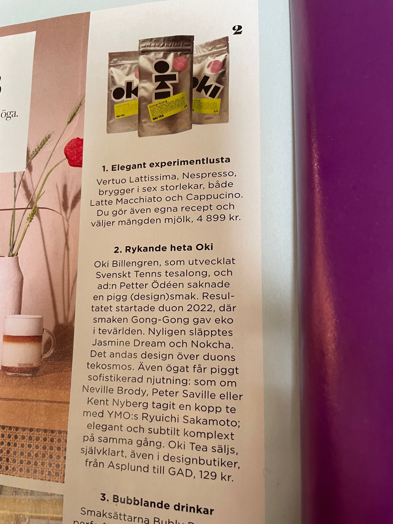 Om du är intresserad av att sälja eller servera kvalitets-téer så får du gärna kontakta oss på hej@okitea.se för att få veta mer.